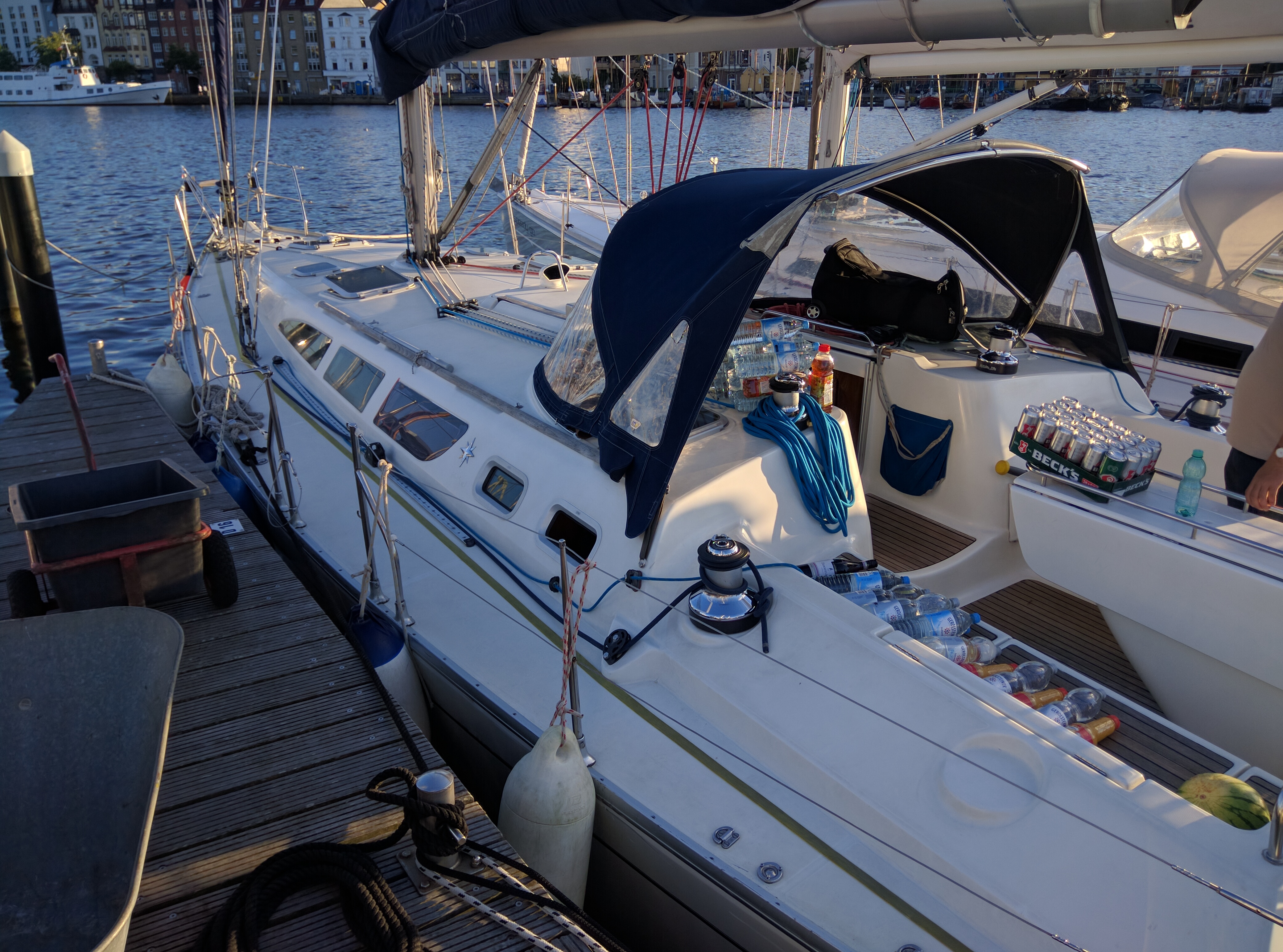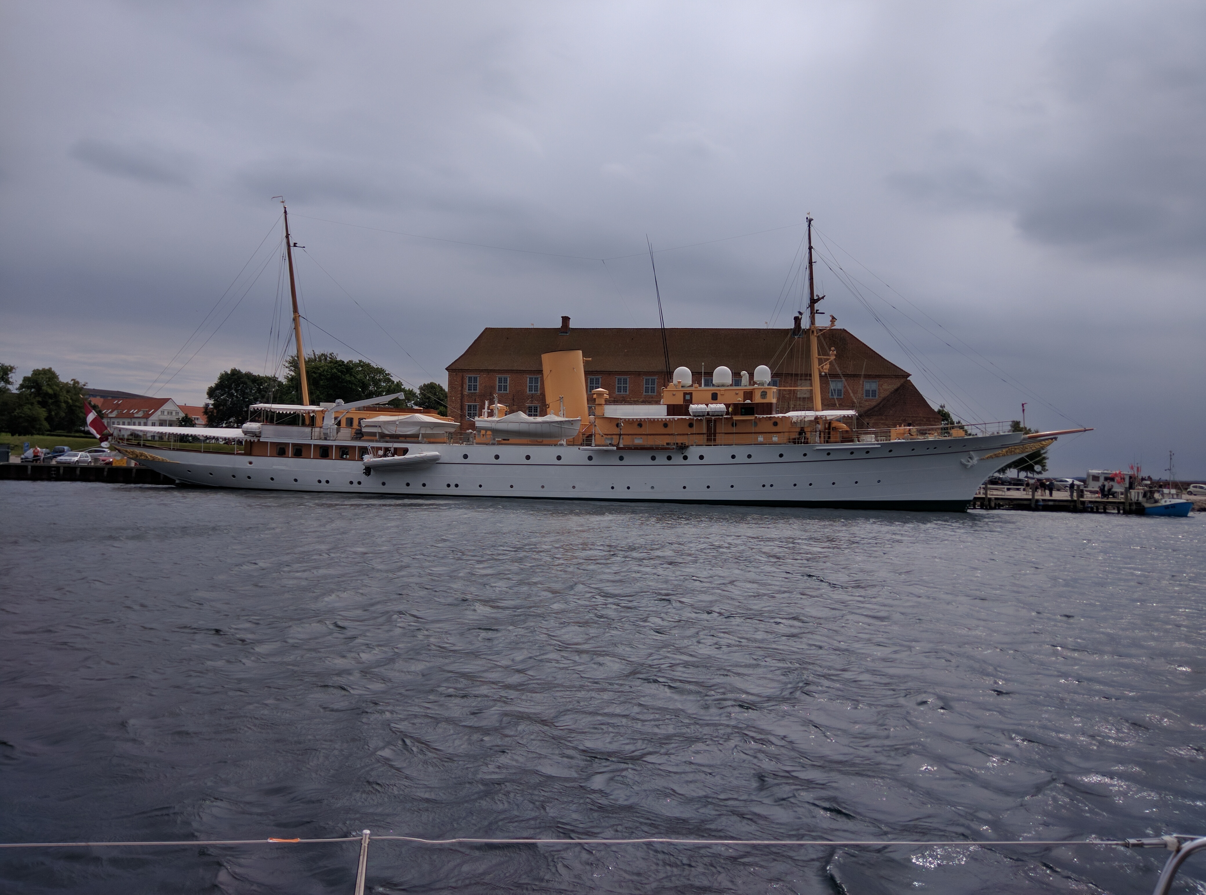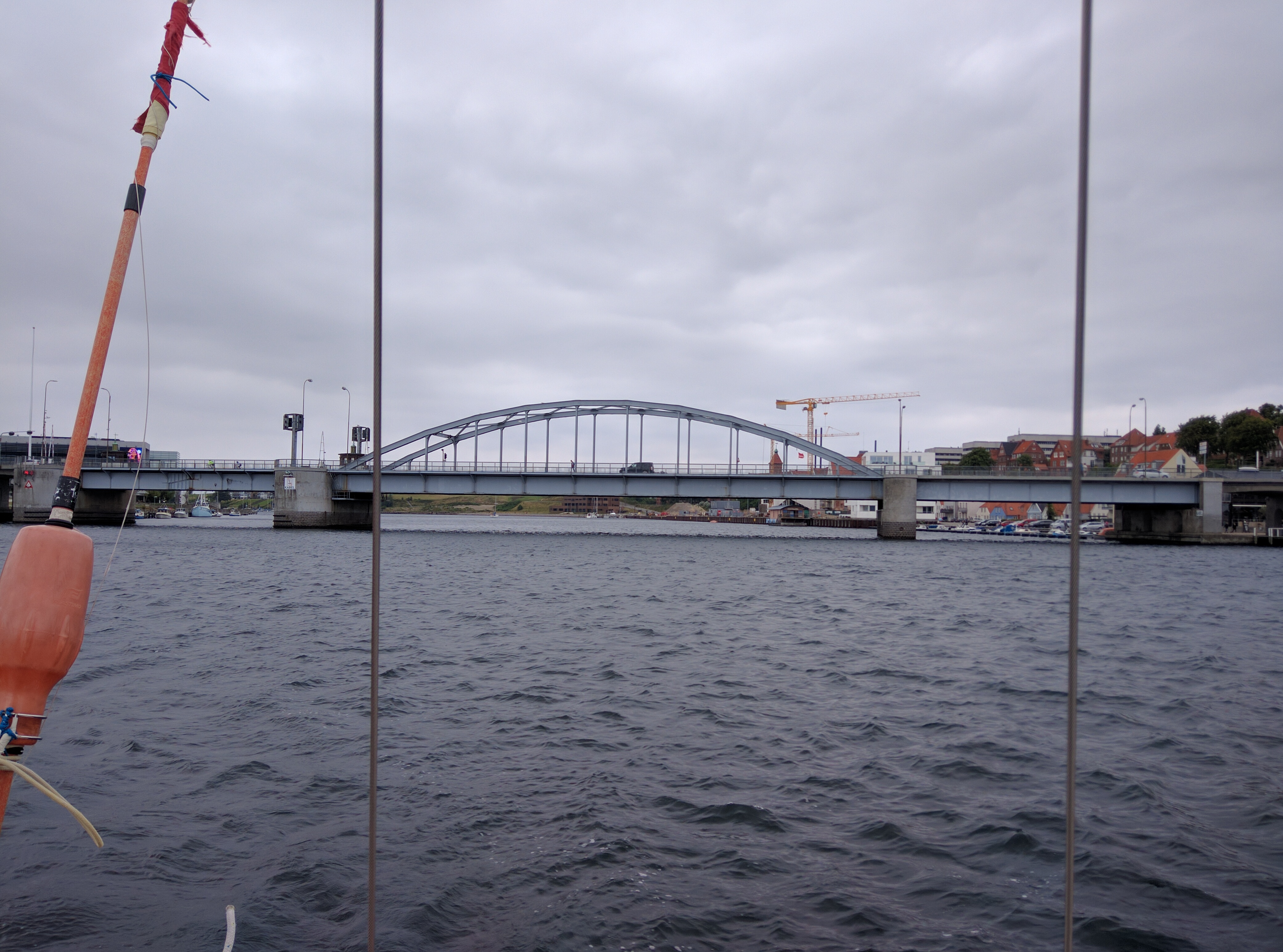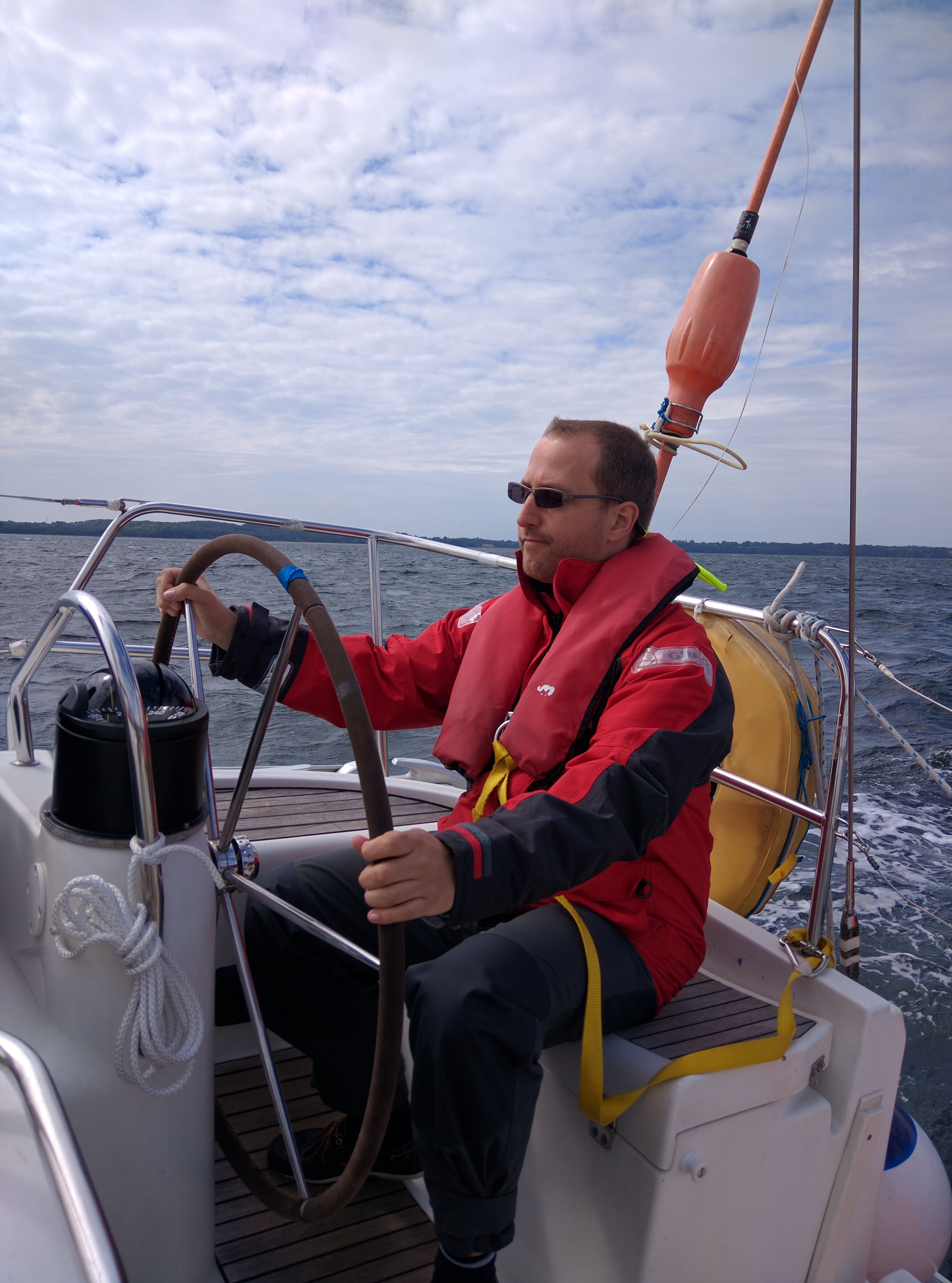 Nach dem Frühstück sind Lisa und ich in die Innenstadt von Svendborg gelaufen, um eine Optiker zu finden, denn gestern hat mich eine schlagende Fokschot im Gesicht und an der Brille getroffen, so dass die Brille nur noch sehr schief auf der Nase halten wollte. Zum glück haben wir auch eine Mitarbeiterin eines kleinen dänischen Optikers gefunden, die meine Brille wieder in Stand setzen konnte und sie auch noch gereinigt hat. Und auf meine Antwort, was ich ihr schuldig sei, sagte sie das wäre so schon in Ordnung und ich konnte endlich wieder richtig sehen. Der Tag fing also bombig an.